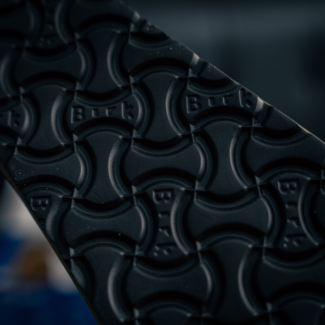 중창에 쿠셔닝 코르크 고무 장착, 특유의 발침 설계로 발에 밀착되어 착용감이 편안함